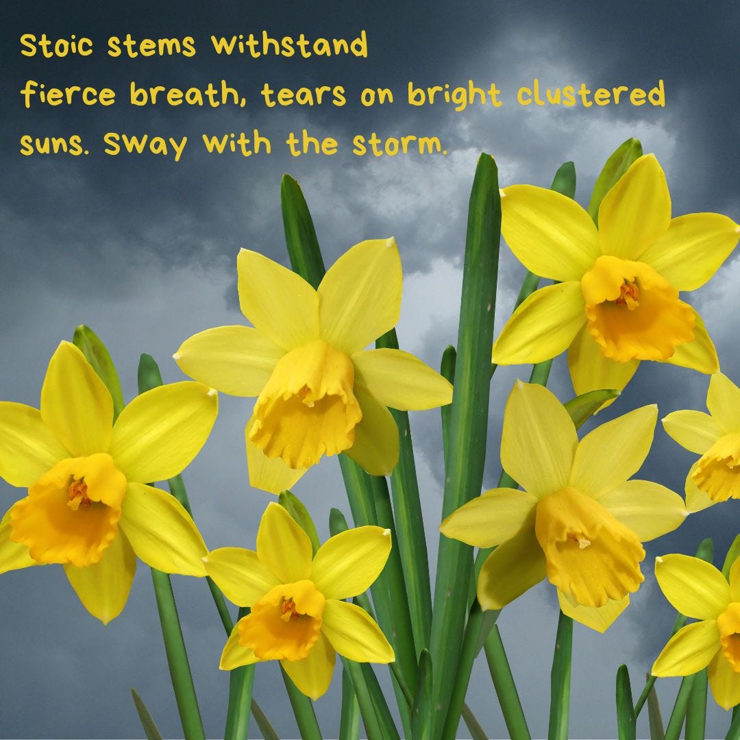 My son calls these flowers ‘poppatils’ - and they are out in force here in Kent. It’s a real contrast between the wild weather, interspersed with bright cold days of winter and the itchy eyes and emerging colours of spring.